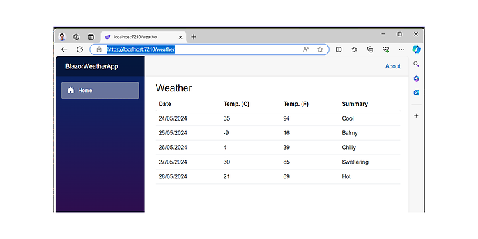 You can find the source code of the app on Github: daniilzaonegin/BlazorWeatherApp: Example of new Blazor Web App in .net 8.0 (github.com).