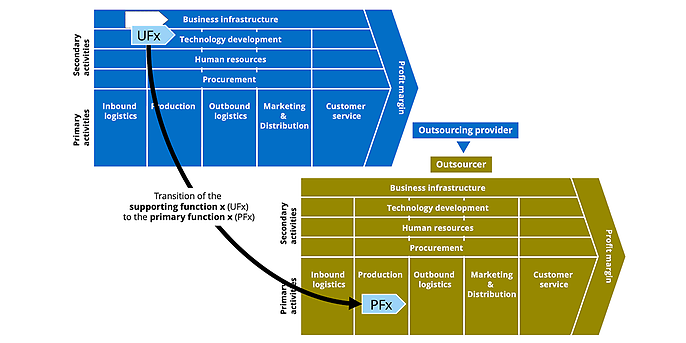 The figure shows how the outsourced support function becomes the value creation (PFx) of the outsourcing customer.